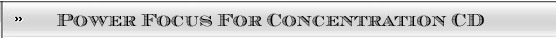 DESCRIPTION: This CD is designed to develop a tool of concentration within your mind using visualization while giving you access to this tool at any time, using mental triggers for access to this powerful concentration state of mind.